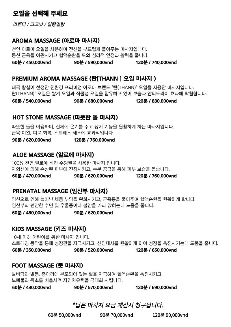 마사지 메뉴 보여주시며 선택하라고했는데, 제가 갔던날은 탄오일이 없어서 프리미엄 마사지를 받을 수 없었어요.ㅠ_ㅠ