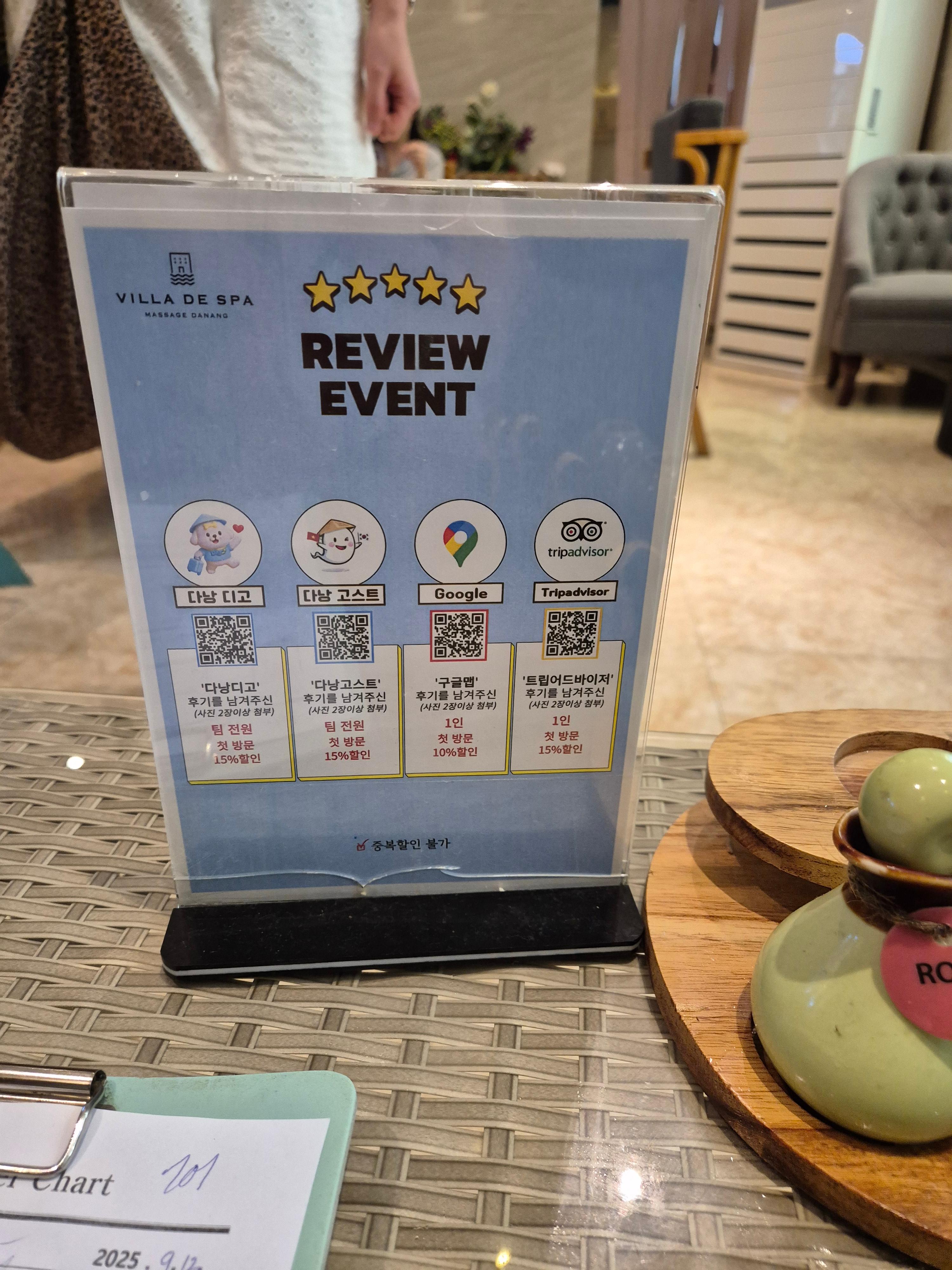 카카오톡 채널 "빌라드스파 다낭" 으로 한국어로 예약가능