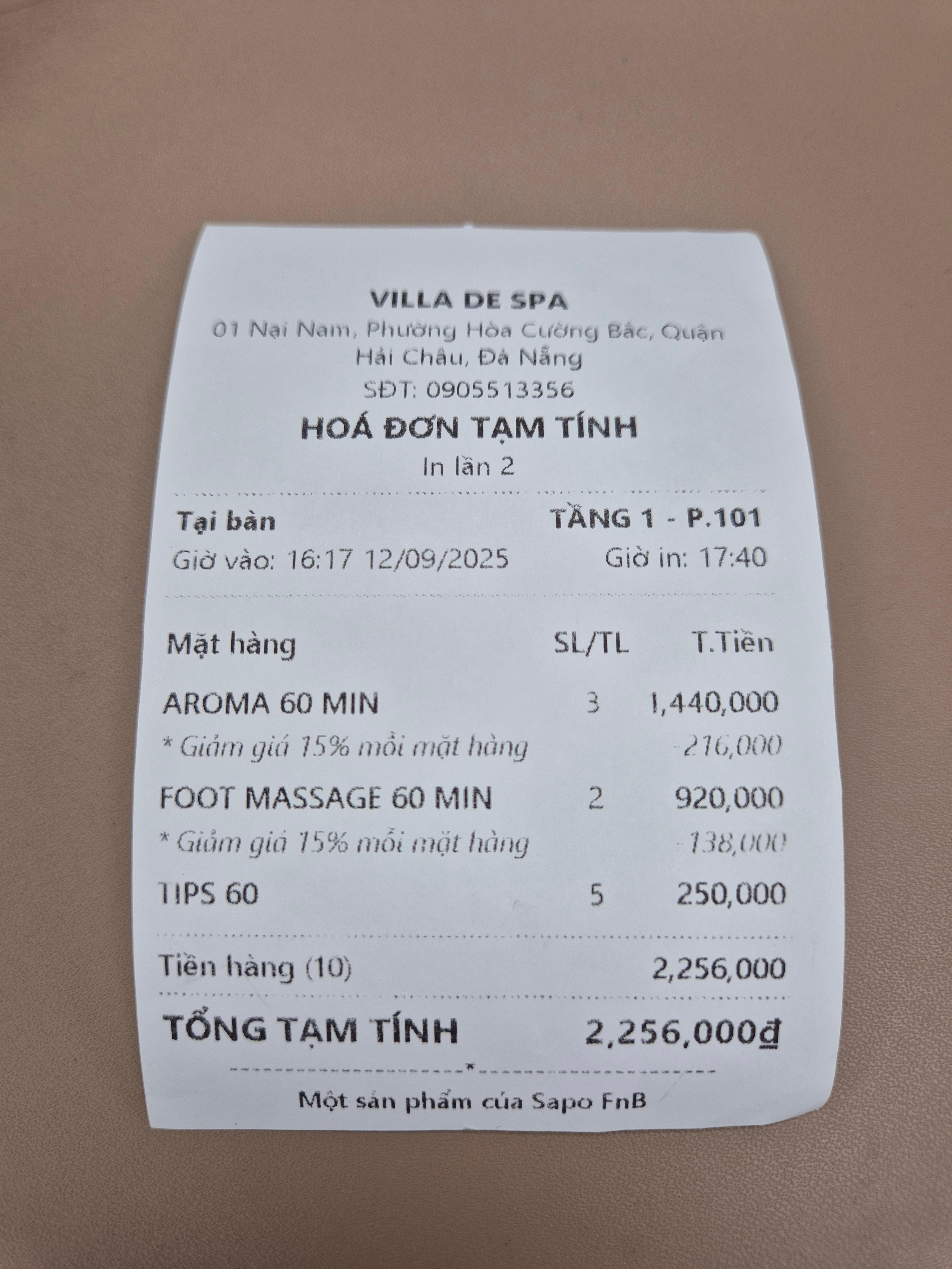 다낭고스트 후기적고 15%할인받으니 2,256,000동.